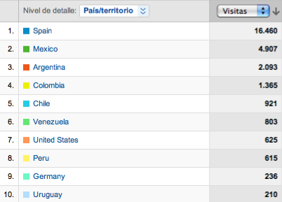 Como suelo hablar de cosas de Madrid, normal, muchas visitas son de ahí. Estas son las visitas de los últimos 60 días. Lo que me llamó la atención fue ver que hay casi las mismas de Barcelona que de Mexico, más visitas de Bogotá que de Sevilla, y casi tantas como en Caracas.