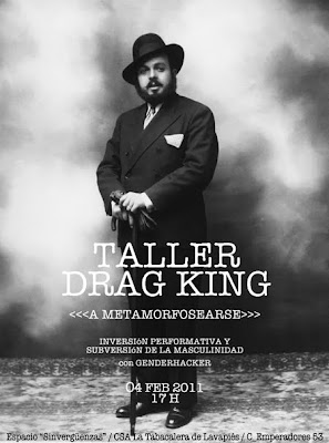 Por un lado, a las 5pm el taller drag-king en la Tabacalera (Madrid). Es lo del cartel que pongo. (via Ponce)
